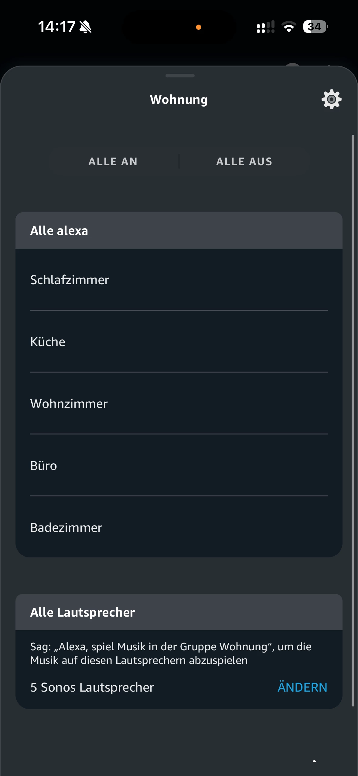 Mein Problem: Ich habe alle Sonos Produkte mit Alexa verbunden. Ich möchte mit dem Sprachbefehl alle Lautsprecher gleichzeitig aktivieren. (z.b.Alexa, spiel in der Wohnung Spotify). Wenn ich in der Alexa App eine Gruppe erstelle, antwortet sie mir zwar “Spotify wird in Wohnung abgespielt”, es läuft aber nur auf der letzten Box, die an war… Wenn ich eine Gruppe in der Sonos App mache, erkennt Alexa dies nicht.