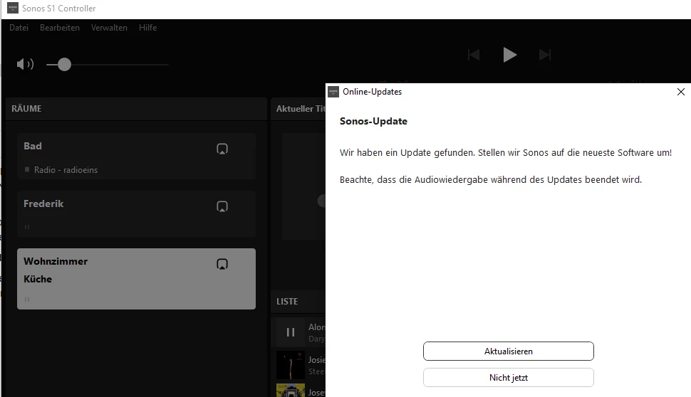 Ich nutze Sonos S1 App Version 11.15.4