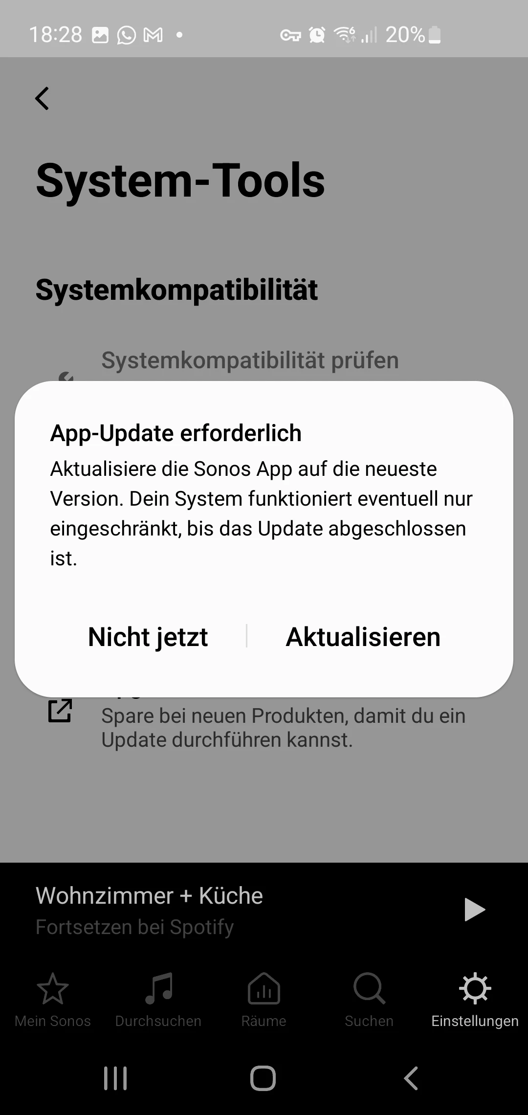 Drücke ich drauf, lande ich im playstore und kann die neue Sonos App installieren. In der neuen App ist es mir dann nicht möglich mich zum S1 System zu verbinden, da es ja ein S1 System ist. Hier drehe ich mich also im Kreis.