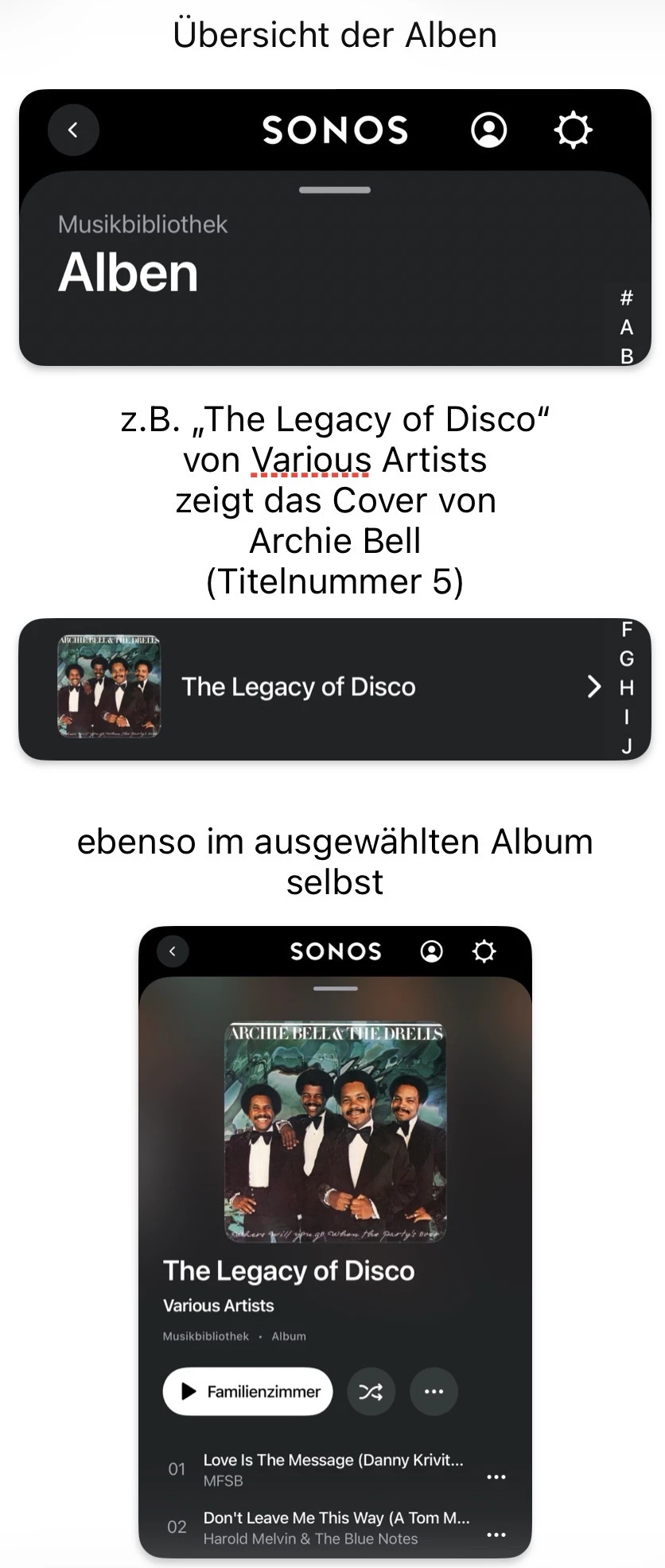 Wenn Sonos routinemäßig erst die eingebettete Datei eines Titels aus der Compilation nimmt muss ich wohl damit leben.