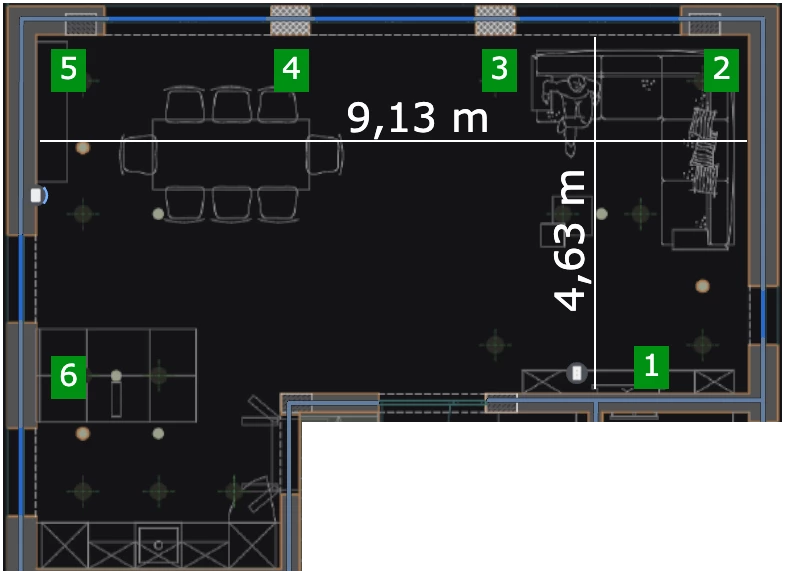 - Positionen 2-6: Hier würde ich eine Steckdose unter die Decke (2,7m) machen - oder sollten die eher auf Kopfhöhe, wenn man auf der Couch sitzt?